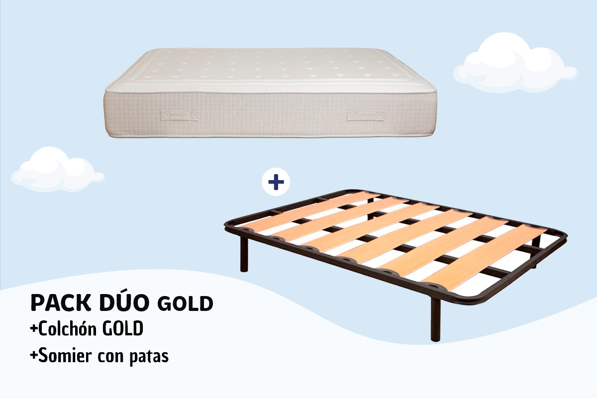 Incluye nuestro colchón PREMIUM modelo GOLD (29 cm de altura) y Somier One con patas en medida estándar.