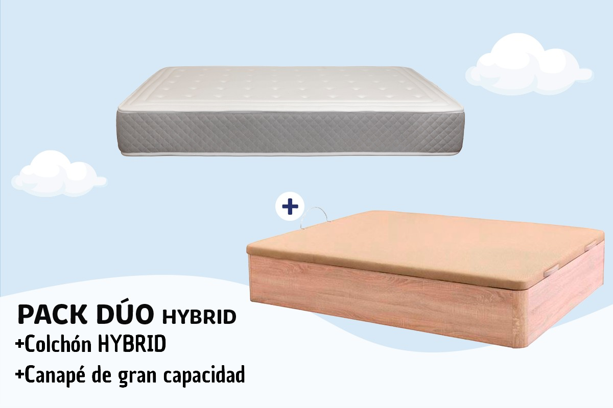 Incluye nuestro colchón HYBRID (26 cm de altura) y canapé de gran capacidad. ¡No te pierdas este descuentazo!