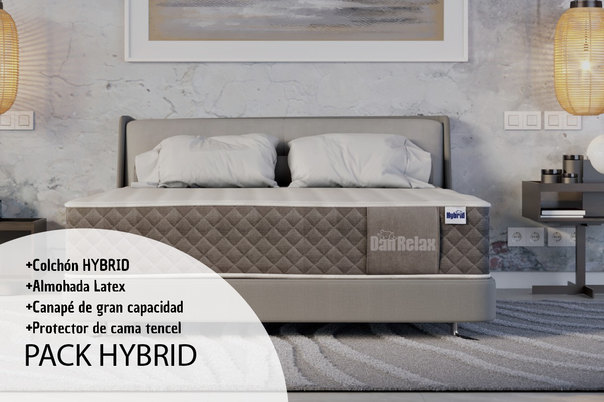 Incluye nuestro colchón mejor valorado, el HYBRID + nuestra almohada LATEX y nuestro Canapé de gran capacidad abatible + el protector de colchón Tencel.